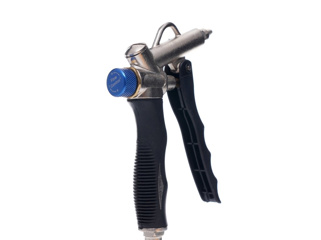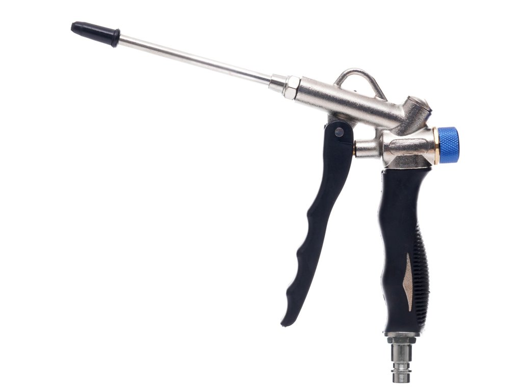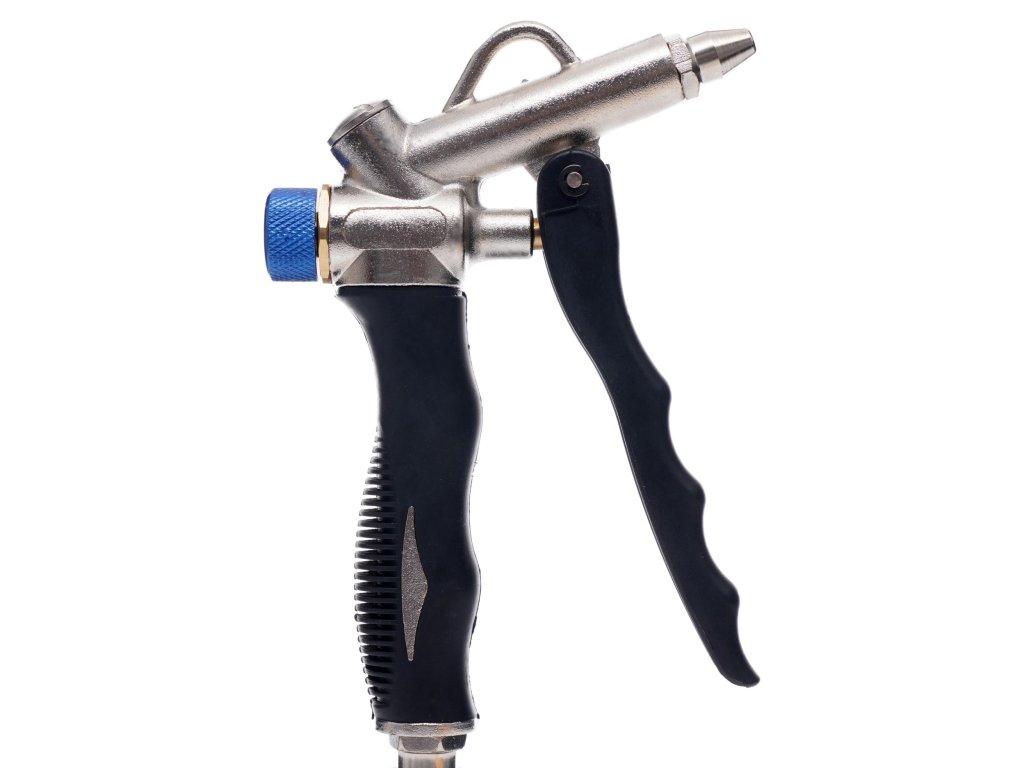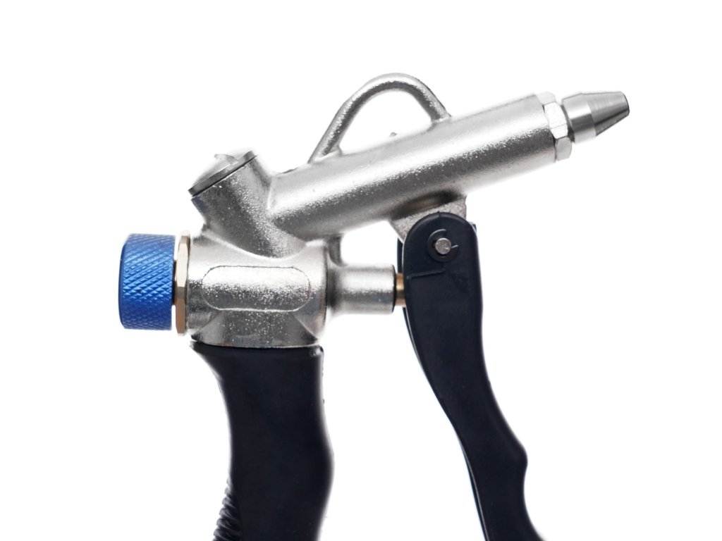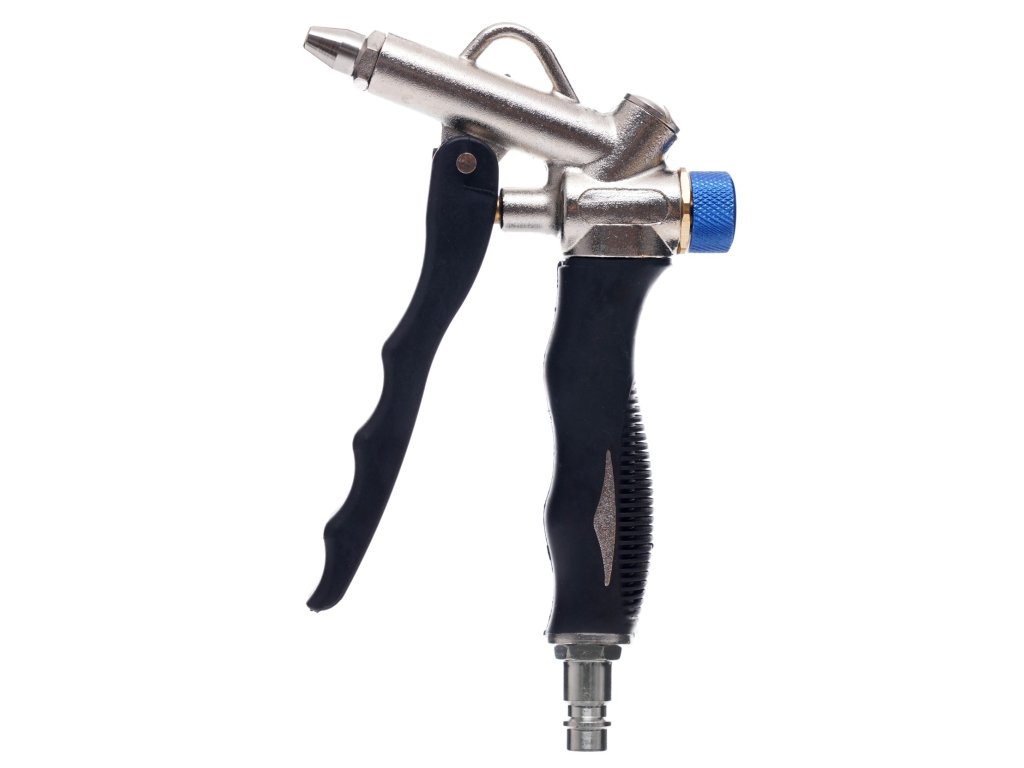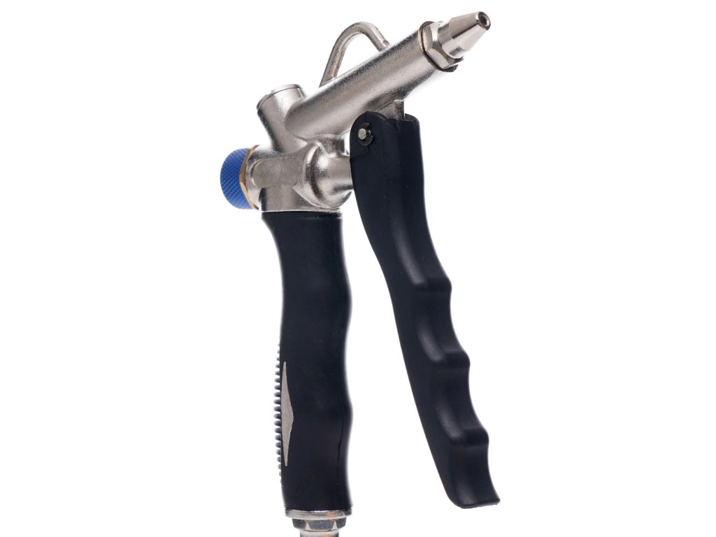 Vysoce kvalitná trysková pištoľ je navrhnutá pre presné a efektívne čistenie, aj na ťažko dostupných miestach. Je pokrytá špecializovanou gumou, ktorá zaručuje bezpečné a šetrné používanie. Pištoľ disponuje reguláciou prietoku vzduchu a tryskou dlhou 110 mm, na ktorej je nainštalovaná silikónová ochranná krytka, aby nedošlo k poškriabaniu čisteného predmetu. Je vyrobená z hliníkových zliatin, čo zabezpečuje jej odolnosť a spoľahlivosť.