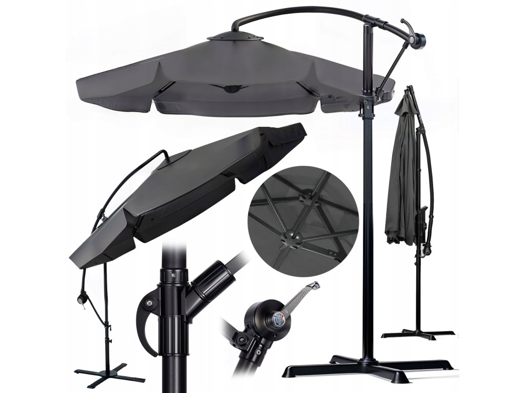 Slnečník je vyrobený z odolnej polyesterovej tkaniny (160 g/m²), ktorá účinne blokuje UV žiarenie. Pevná oceľová konštrukcia zaisťuje stabilitu aj dlhú životnosť. Jednoduché skladanie umožňuje praktický otočný mechanizmus s kľučkou, vďaka ktorému slnečník ľahko rozložíte aj zložíte v priebehu niekoľkých sekúnd.