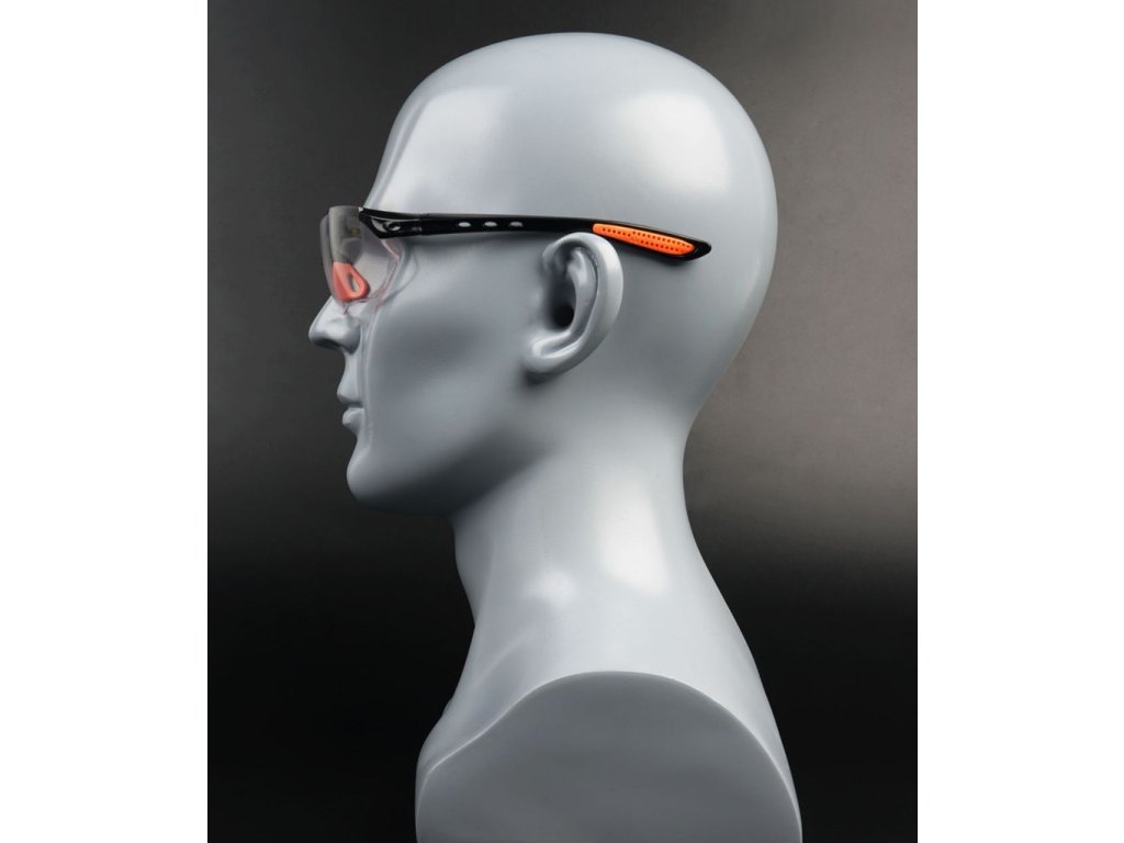 Okuliare spĺňajú normu EN166:2002 a disponujú certifikáciou CE II kategórie ochrany , čo potvrdzuje ich vysokú úroveň bezpečnosti a ochrany proti pevným časticiam s rýchlosťou nárazu až 45 m/s (F) . Nosníky a koncovky nožičiek sú vyrobené z termoplastickej gumy TPR, ktorá prispieva k pohodlnému a stabilnému uchyteniu.