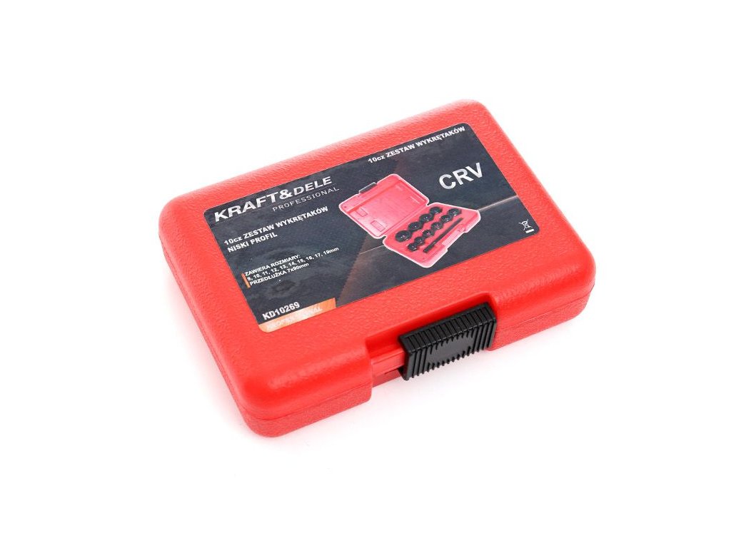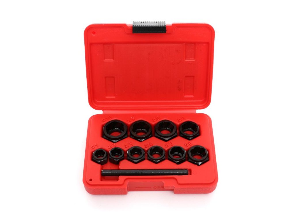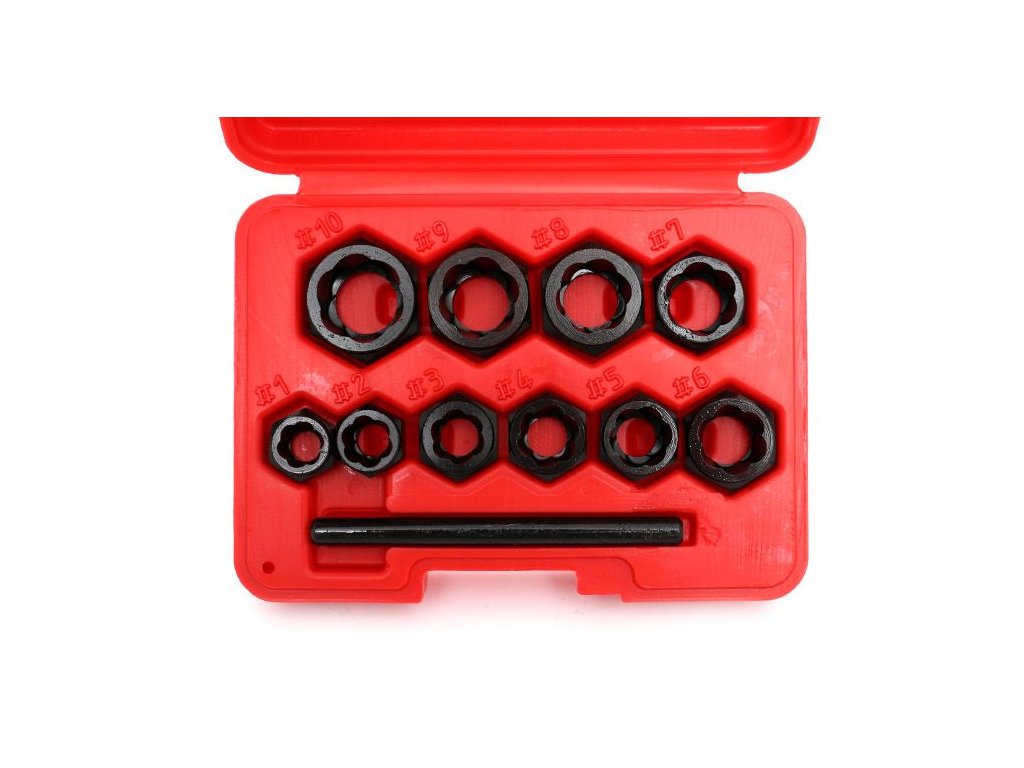 Sada obsahuje extraktory v 10 veľkostiach: 9, 10, 11, 12, 13, 14, 15, 16, 17 a 19 mm.
