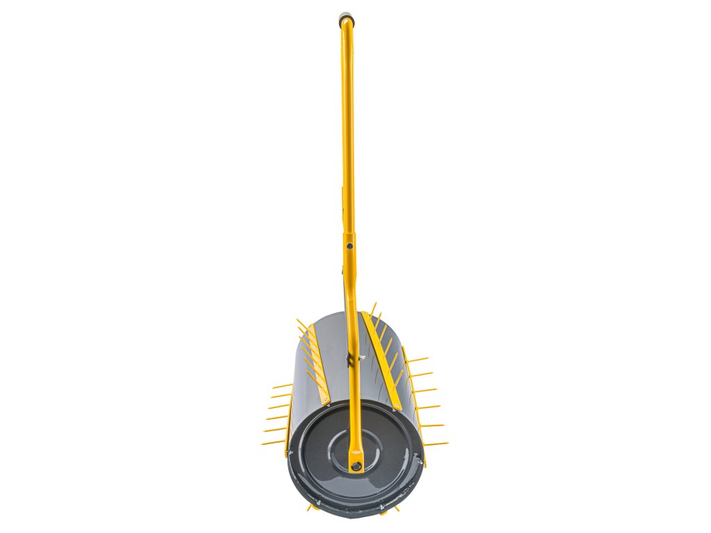 Záhradný valec POWERMAT sa vyznačuje výnimočnou odolnosťou a robustnou konštrukciou, čo zaručuje jeho spoľahlivosť aj v náročných podmienkach. Prístroj je vybavený 6 panelmi s 36 hrotmi dlhými 5,5 cm, ktoré efektívne prevzdušňujú pôdu, spevňujú ju a vyrovnávajú ryhy, nerovnosti a krtince, čím vytvárajú ideálne plochý povrch pre pohodlné kosenie trávy.