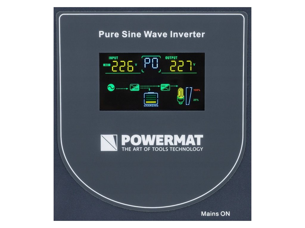 - Režim meniča DC/AC: napájanie priamo z batérie bez pripojenia k elektrickej sieti.