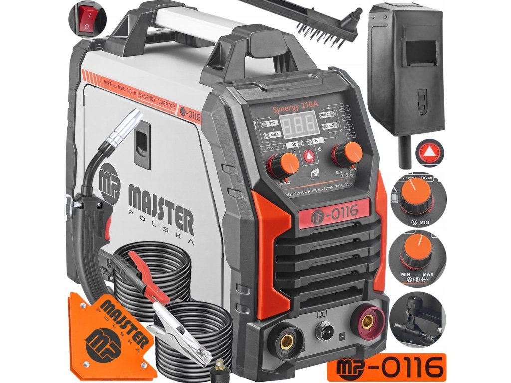 - Vysoký výkon a efektivita: 210A pre rôzne typy zvárania.